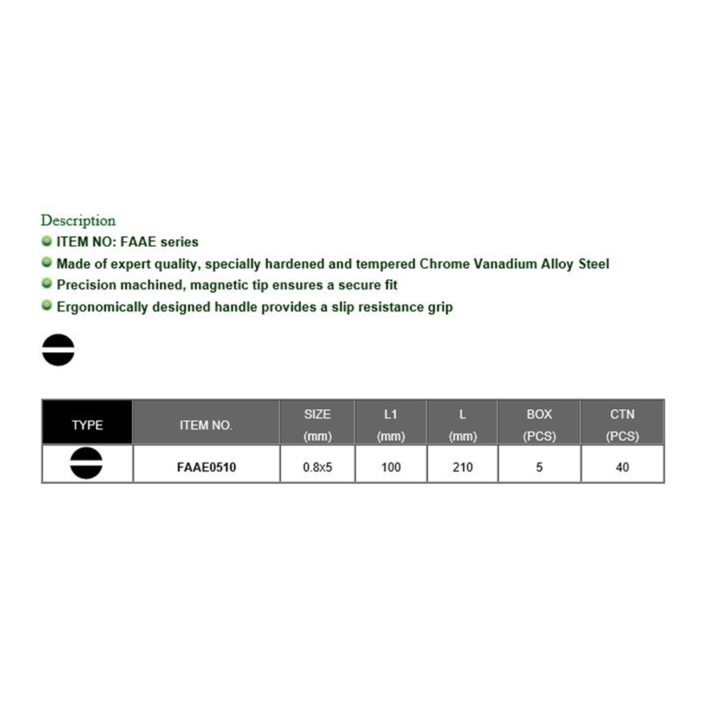 Toptul 0.8 x 5 x 100 L1 mm Slotted Anti Slip Screwdrivers