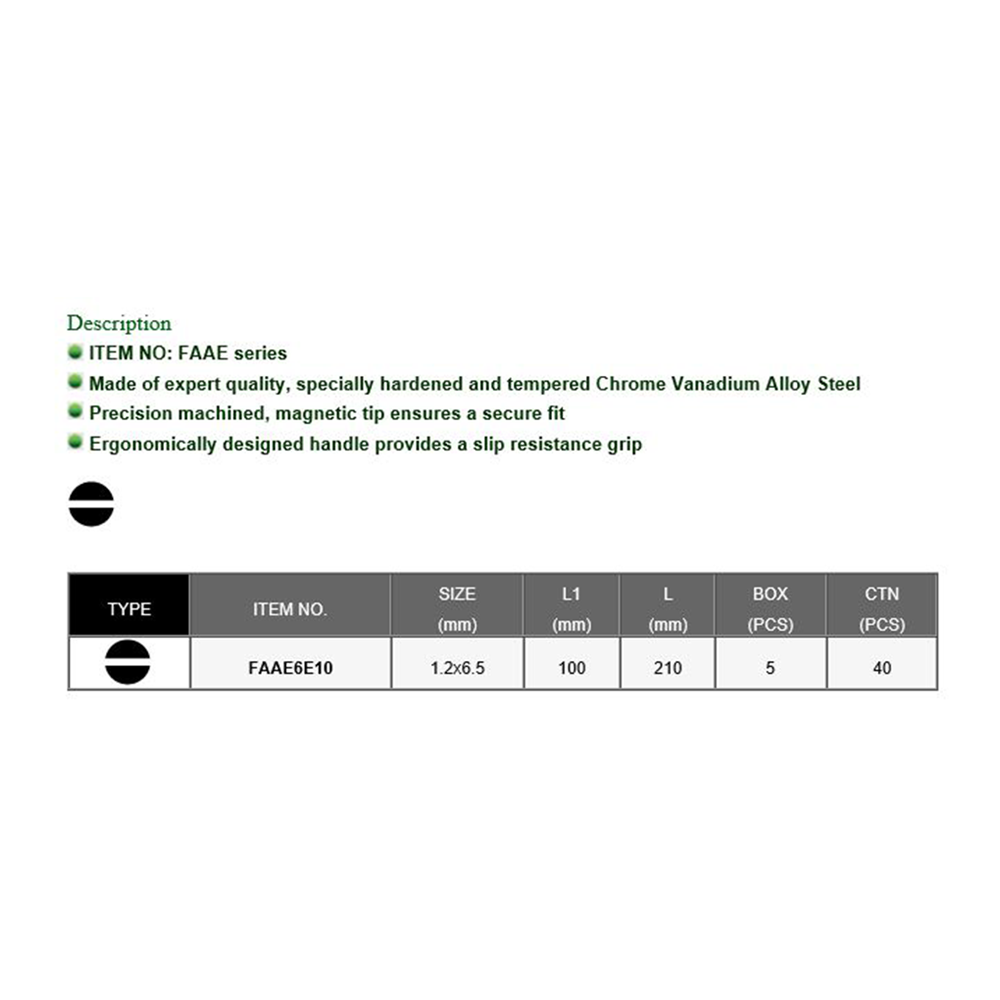 Toptul 1.2.6.5 x 100 L1mm Slotted Anti Slip Screwdrivers