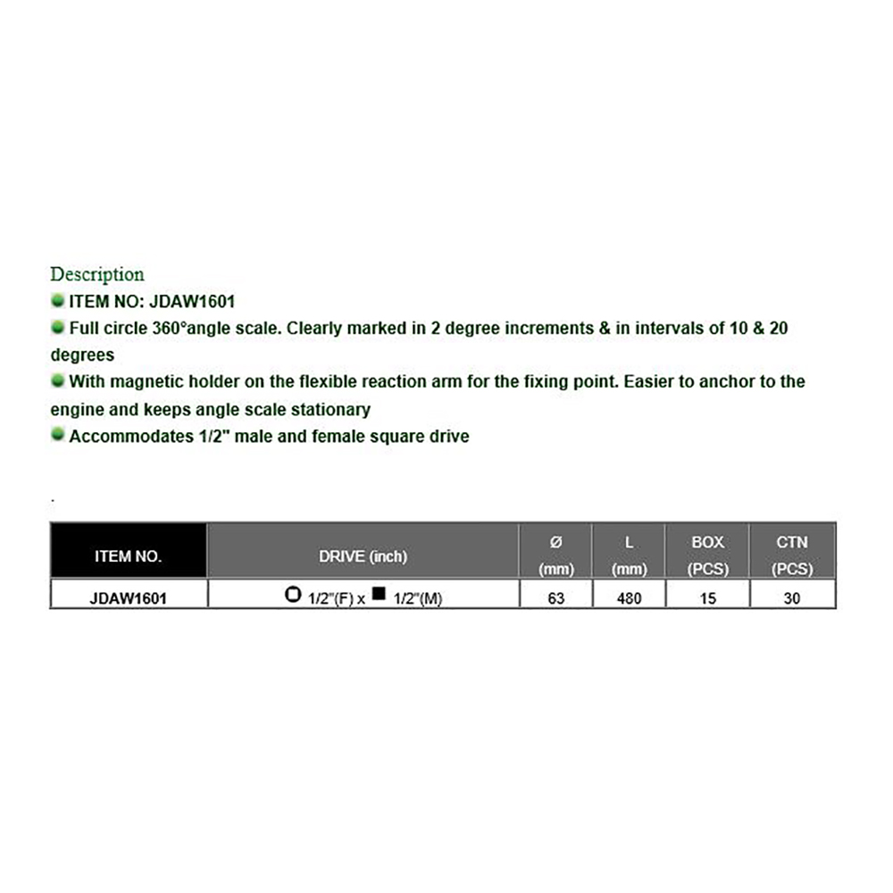 • Full circle 360°angle scale. Clearly marked in 2 degree increments & in intervals of 10 & 20 degrees