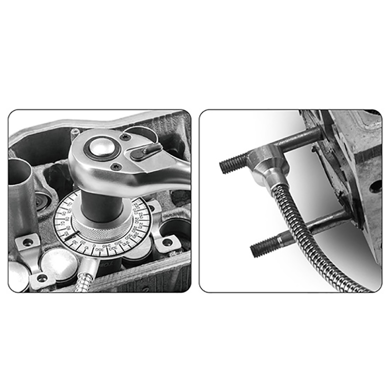 • With magnetic holder on the flexible reaction arm for the fixing point. Easier to anchor to the engine and keeps angle scale stationary