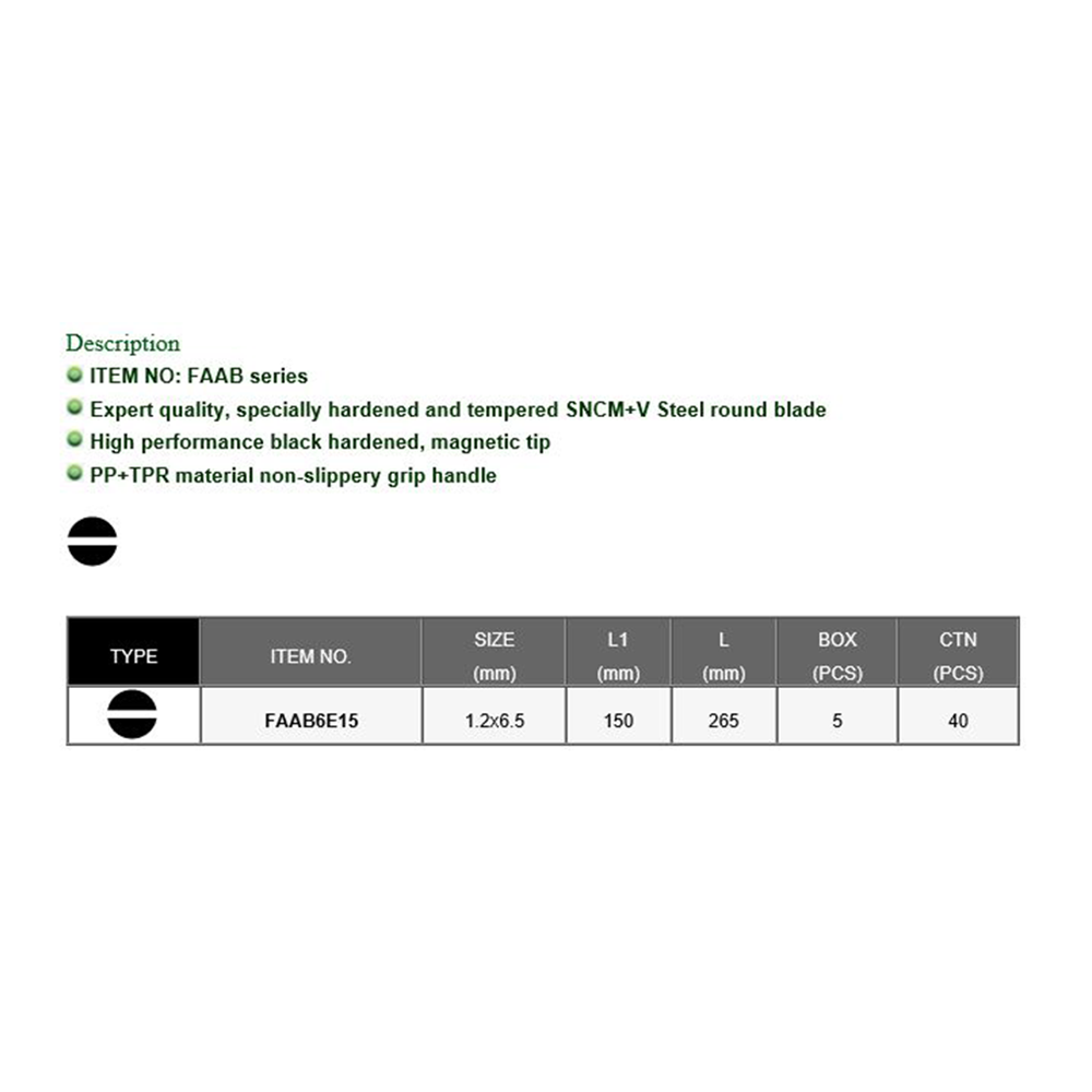 Toptul 1.2 x 6.5 x 150 L1 mm Slotted Anti Slip Screwdrivers
