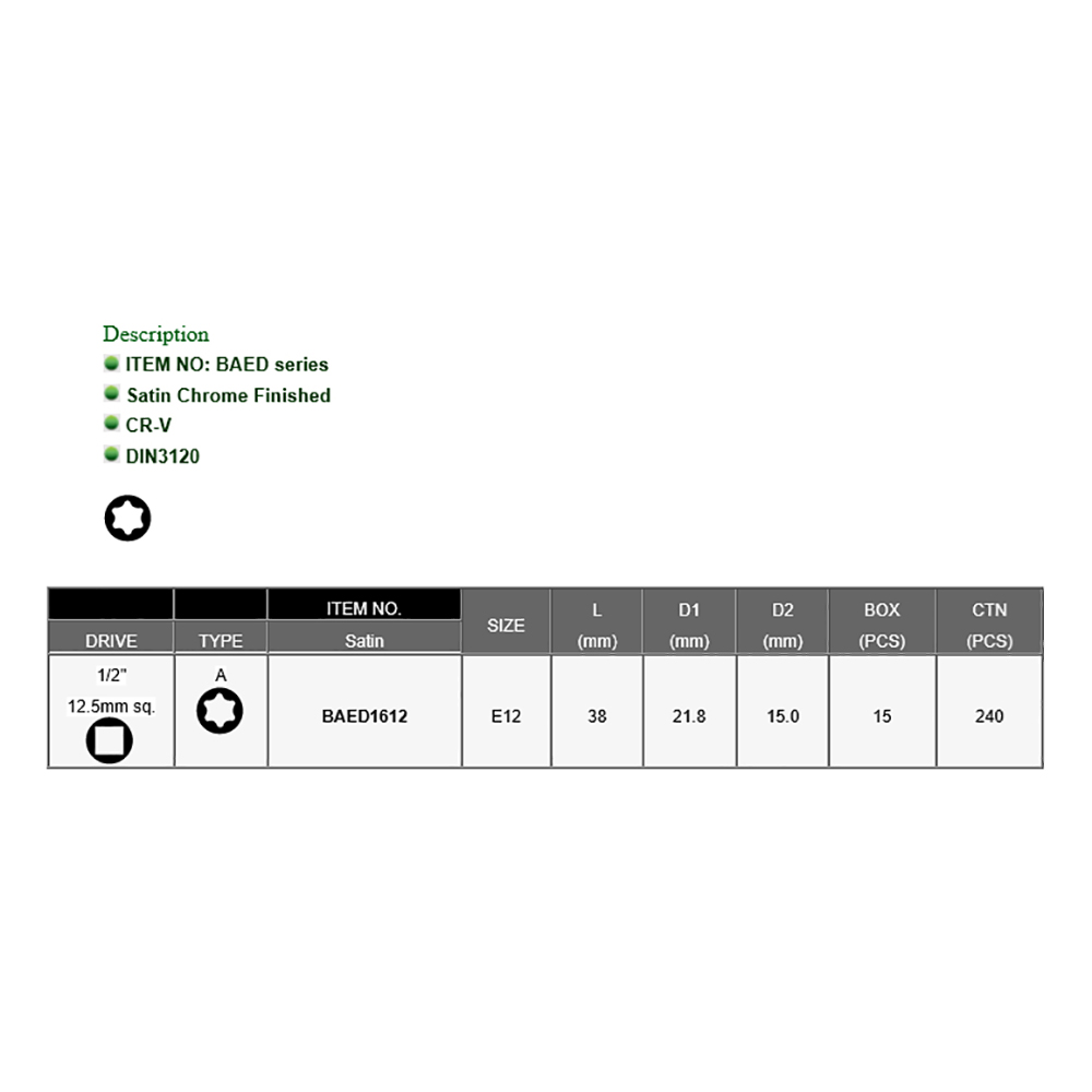 Toptul 1/2 x E12 Hand Socket 1/2 Dr. 12 PT
