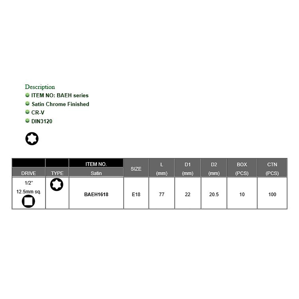 Toptul 1/2 x E18 Deep Star Sockets Satin Chrom