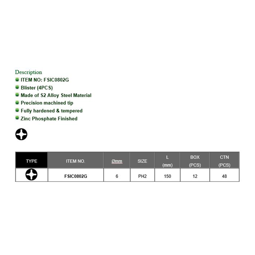 1/4″ Hex Shank Phillips Power Screwdriver Bits (100mm)