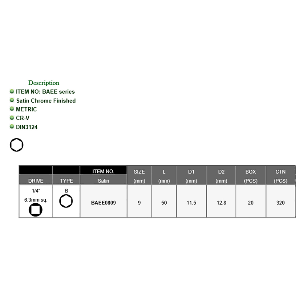 Toptul 1/4 x 9 mm 6 pt. DR. Deep Socket Satin Chrom
