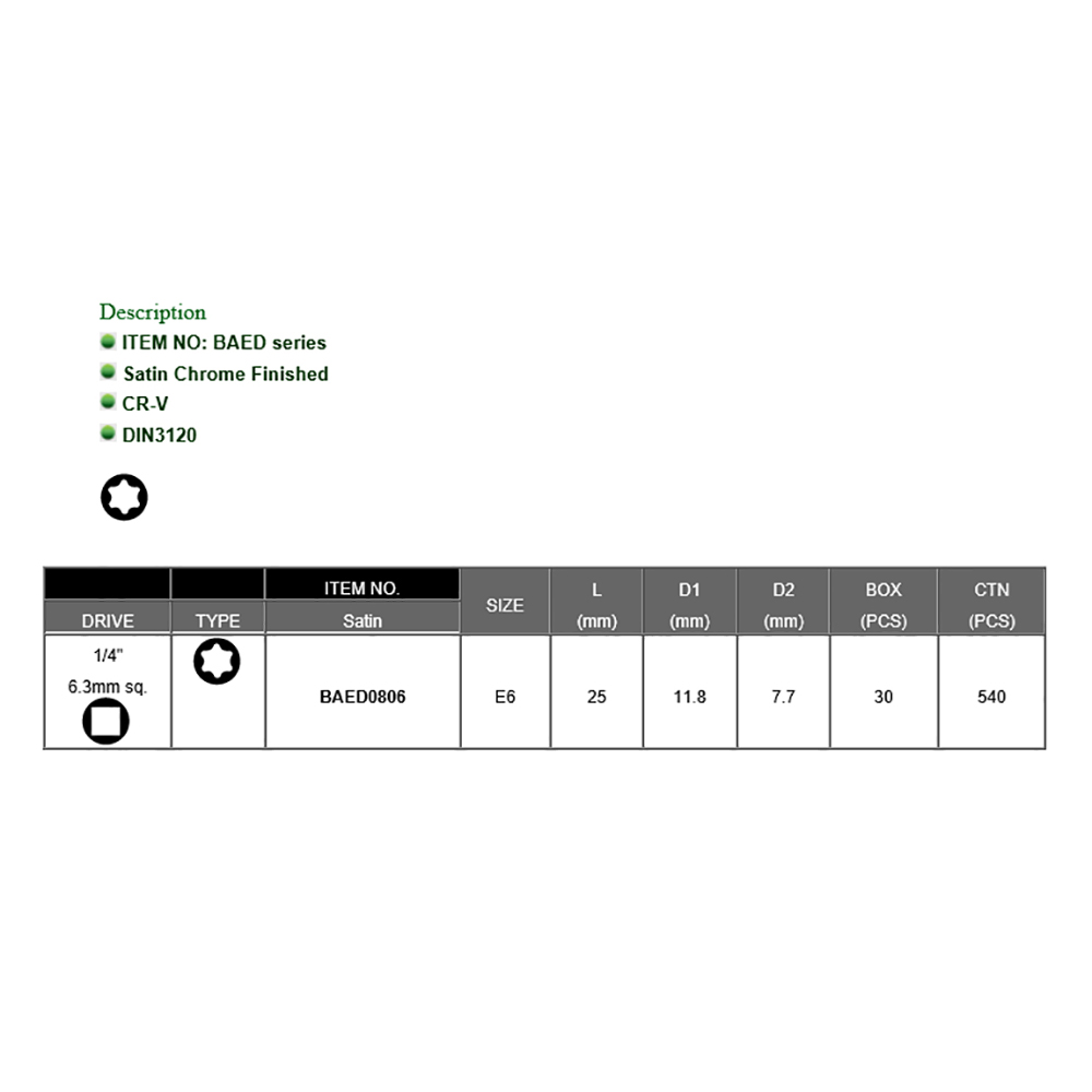 Toptul 1/4 x E6 Dr. Star Socket Satin