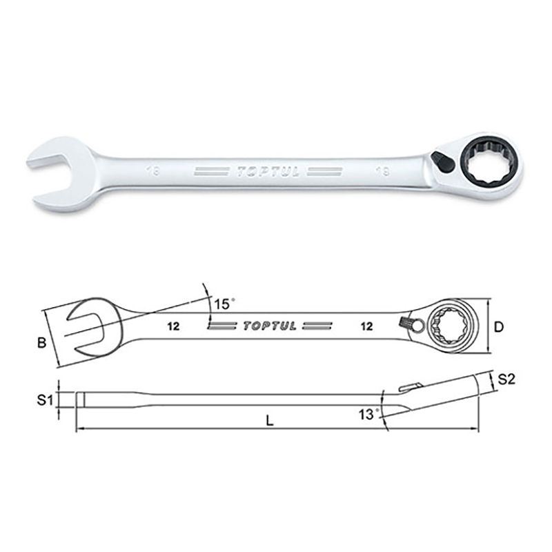 Toptul 12 mm L = 171 mm Reversible Ratchet Combination Wrench