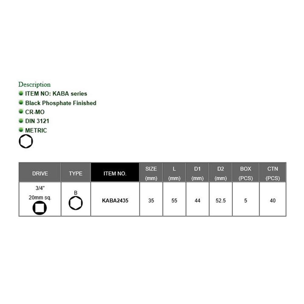 Toptul 3/4 x 35mm L=55 6PT Flank Impact Socket Black Phosphate