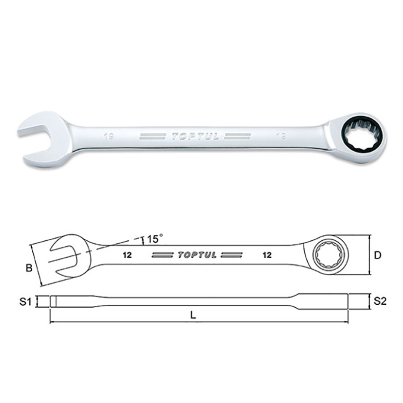 Toptul 8 mm L = 140 mm Pro Series Ratchet Combination Wrench