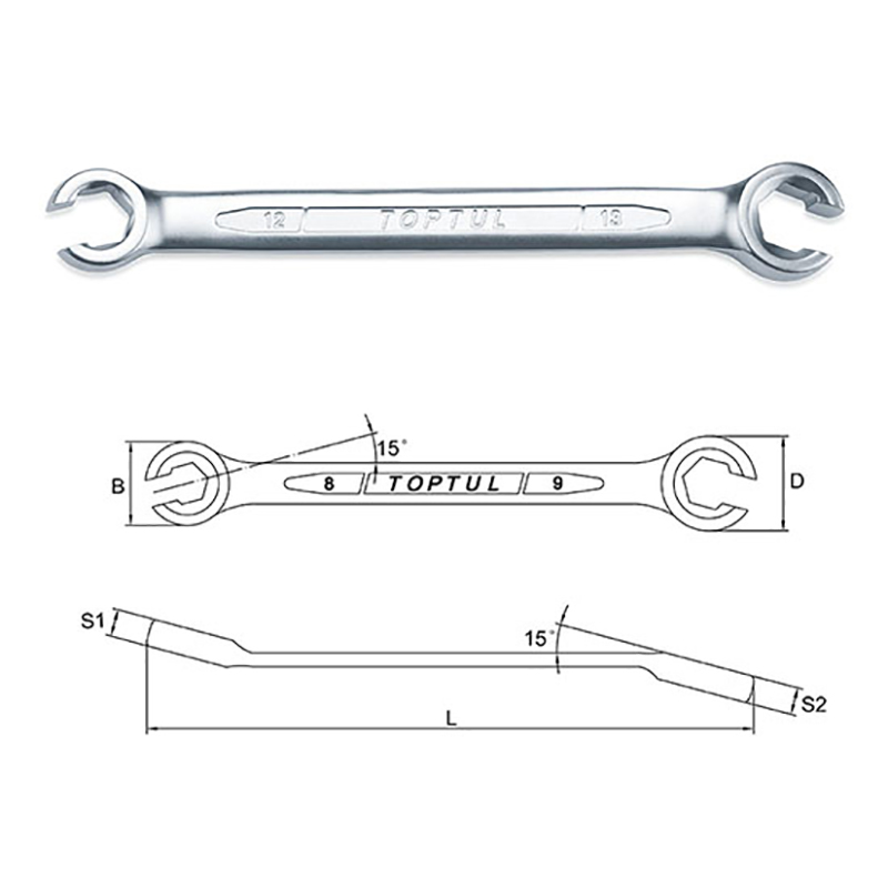 Toptul 8 x 10 mm Flare Nut Wrench Satin Chrome