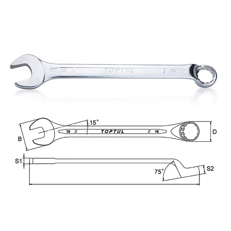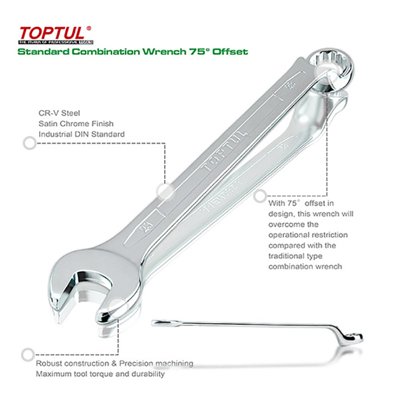 Standard Combination Wrench 75° Offset – METRIC (Satin Chrome Finished)