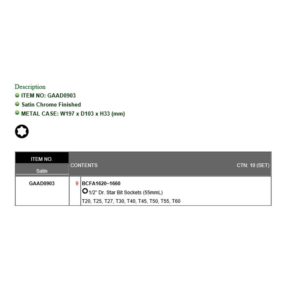 9PCS 1/2″ DR. Star Bit Socket Set