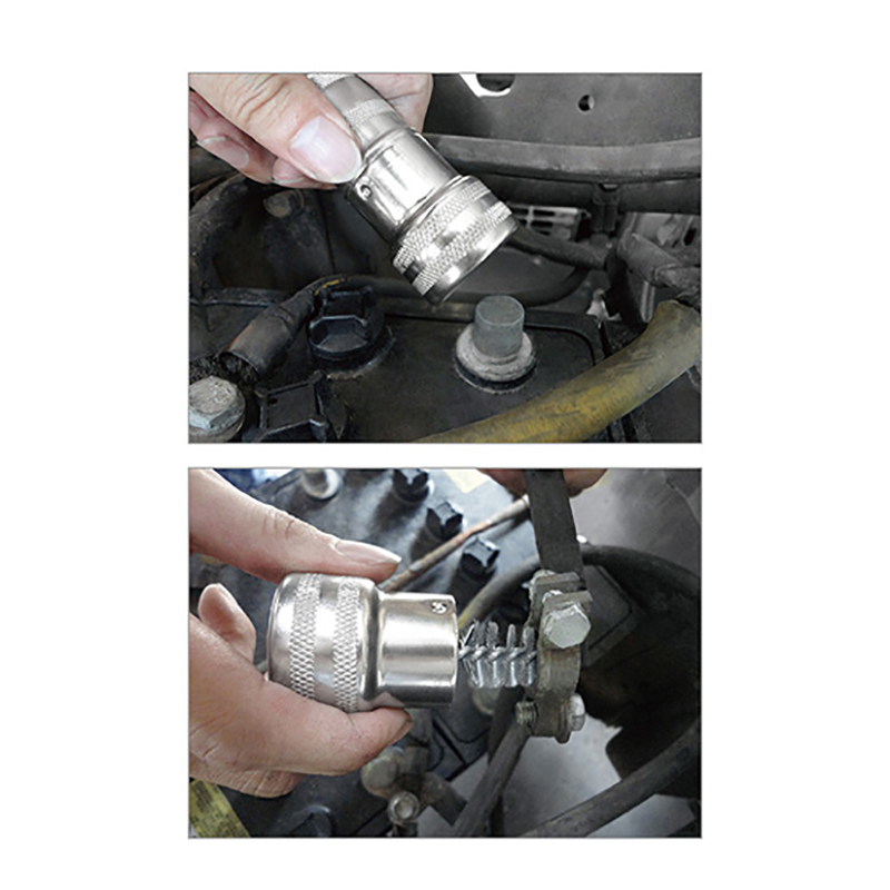 • Wire brushes remove corrosion build-up on battery pole and terminals for improved electrical contact