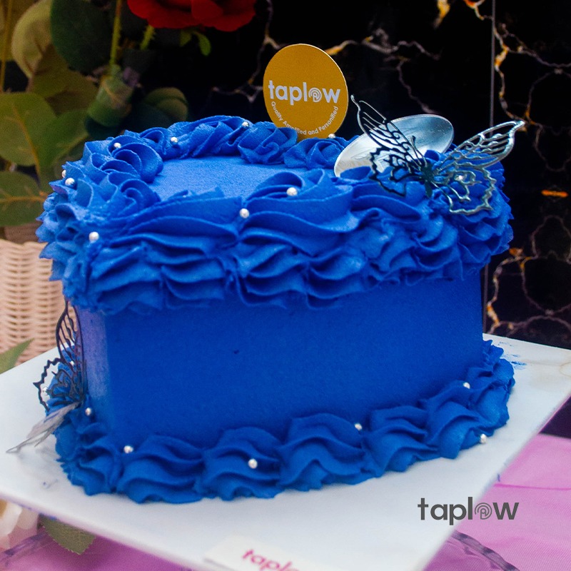 The Blue Royal Heart Cake is a striking dessert, featuring a rich blue color and heart-shaped design that makes it perfect for romantic occasions. Its elegant look and delicious flavor make it an ideal centerpiece for anniversaries, weddings, or other celebrations of love. With its vibrant blue hues and delightful taste, this cake adds a touch of royalty and sophistication to any event.