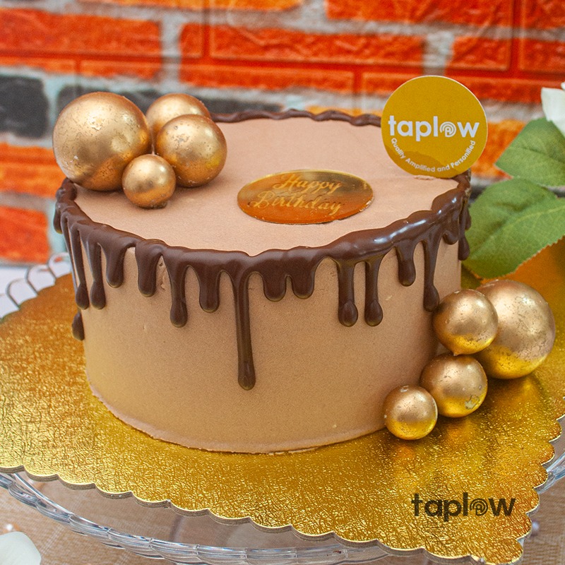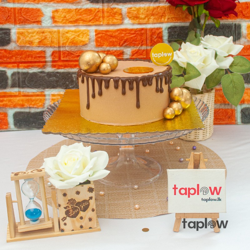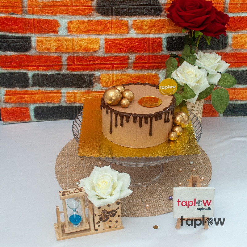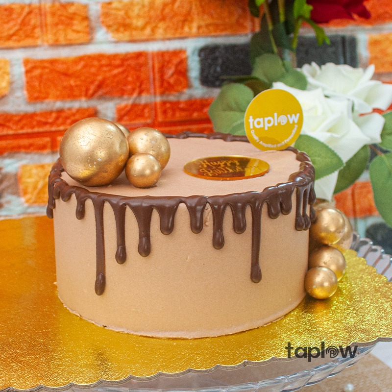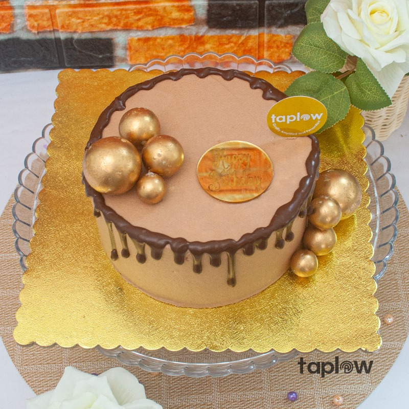 A decadent chocolate cake with soft, moist layers and a rich, creamy finish. Topped with a smooth chocolate glaze and elegant golden balls, it’s a true royal indulgence!