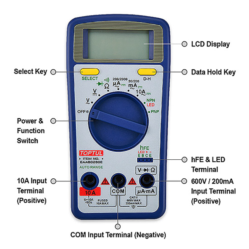 Toptul DC/Ac 2a 10a Digital Multimeter