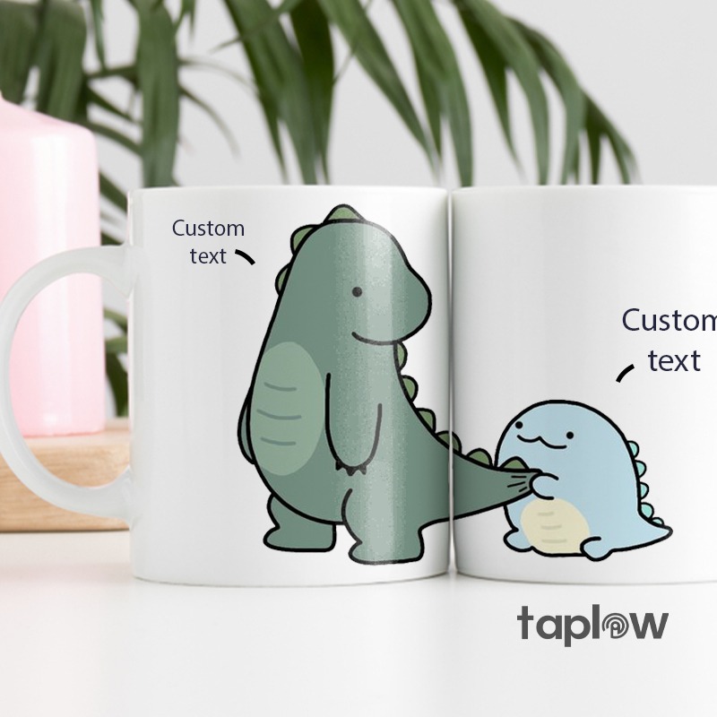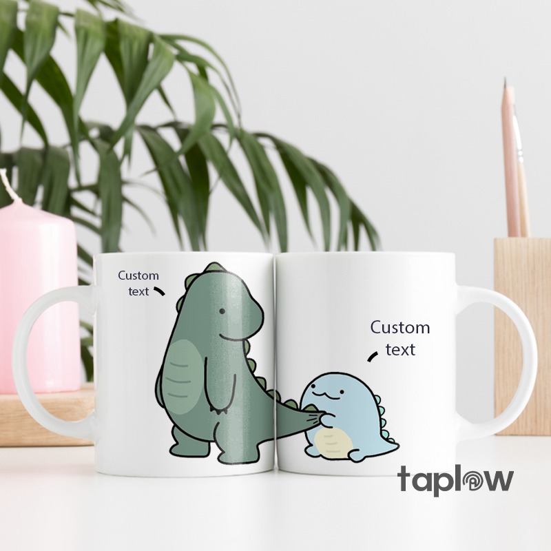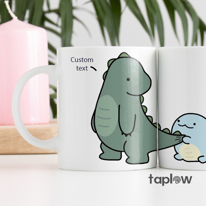 Celebrate your little love story with the Dino Duo Love Mugs! Featuring a green, cute dino and a light blue small dino, these mugs can be personalized with your names or a special message. Perfect for couples who enjoy a fun, playful twist on their everyday coffee or tea ritual.