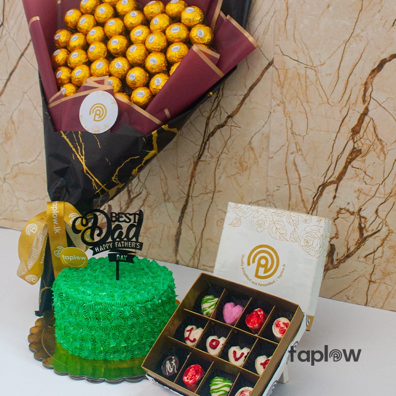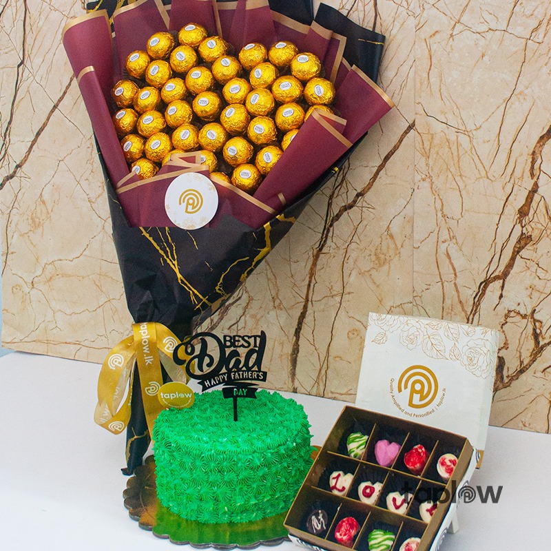 Treat Dad to the ultimate indulgence with the Father’s Day Sweet Luxury Set. This premium collection includes the rich and buttery Father’s Day Special Cake, a Ferraro Chocolate Bouquet, and smooth Swiss Praline Chocolates—everything he needs for a truly sweet celebration.