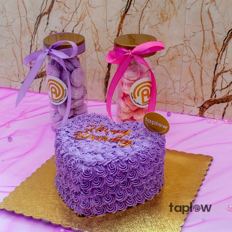 Indulge in the perfect blend of love and sweetness with our Lavender Love & Sprinkle Kisses Set. This enchanting heart-shaped lavender cake is beautifully crafted to melt hearts, while playful sprinkles add a fun and colorful touch. Whether celebrating a special occasion or spreading joy, this delightful set is the perfect gift for someone you adore.