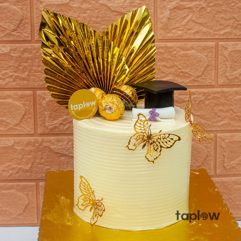 A premium cake designed to make graduation moments extra special!Elegant, stylish, and crafted with love — this cake adds a touch of luxury to your proudest day. Perfect for celebrating achievements and new beginnings most sweetly.