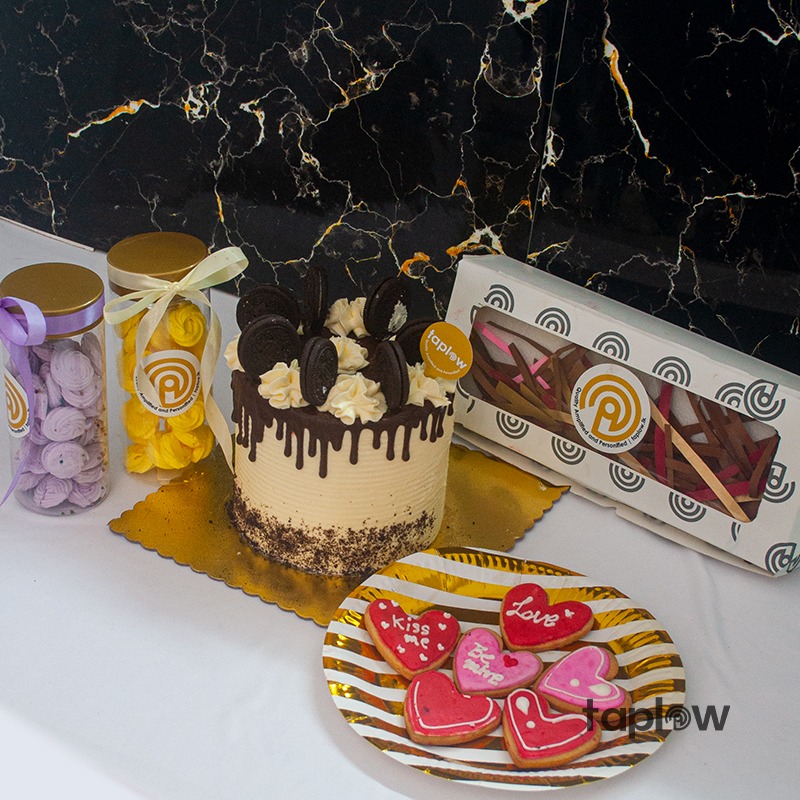 Oreo Kisses & Crumbs Gift Set is a decadent trio crafted for the true dessert lover. This indulgent set includes a rich, chocolate Oreo cake layered with creamy goodness, two bottles filled with sweet kisses for a touch of charm, and a pack of freshly baked cookies to complete the treat. Perfect for gifting or sharing, this set brings together crunch, cream, and a whole lot of love in every bite.
