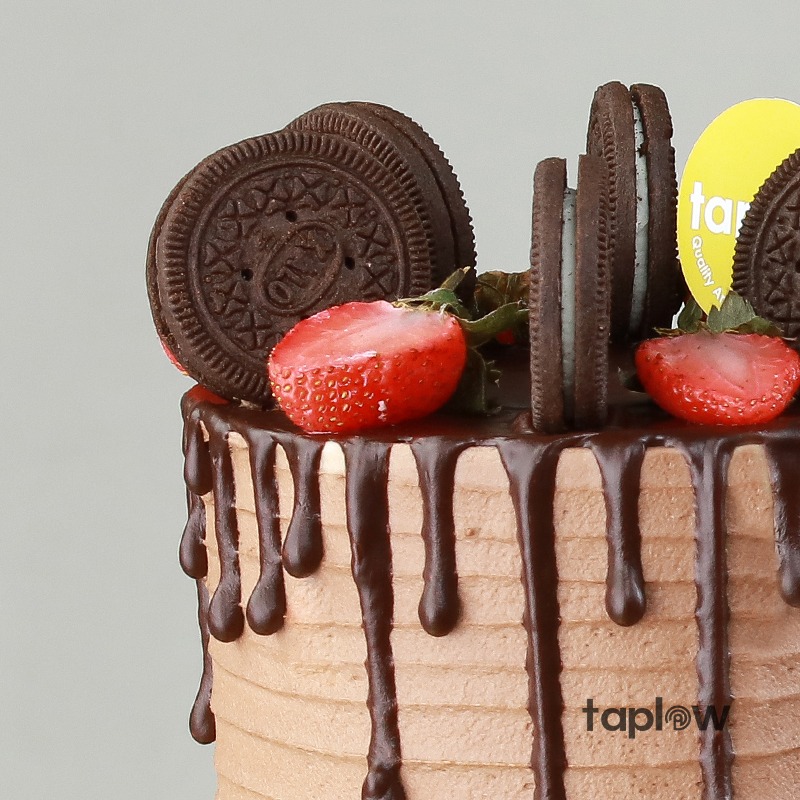 A tall and elegant delight layered with creamy chocolate frosting, topped with crunchy Oreo cookies and fresh, juicy strawberries. Finished with a smooth chocolate drip, this cake is perfect for birthdays, parties, or any sweet celebration that calls for rich chocolate and fruity bliss.