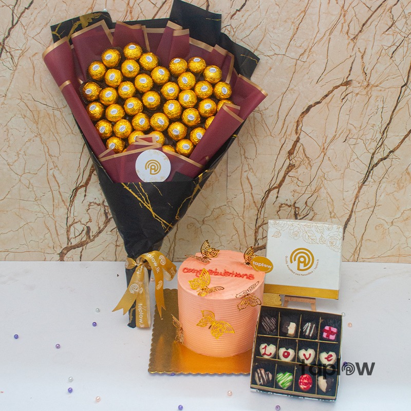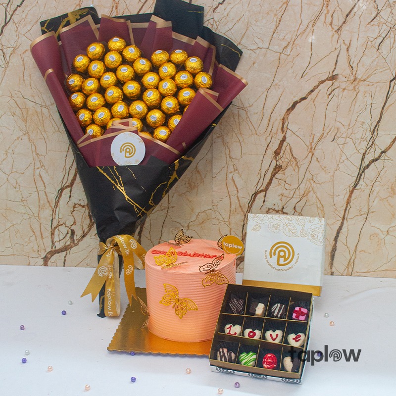 A sophisticated gift set designed for the ultimate celebration. The Peach & Pralines Luxury Collection brings together a perfect combination of indulgence and elegance, making it the ideal choice for sending congratulations or marking any special occasion.