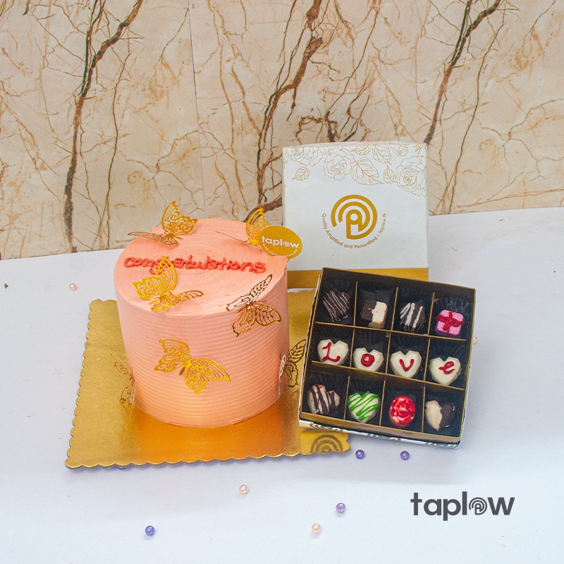 A sweet and indulgent way to celebrate any occasion, the Peachy Pralines Celebration Gift Set combines the delightful flavors of a fresh Peach Cake and premium Signature Swiss Pralines chocolates. Perfect for sending congratulations or marking a special milestone