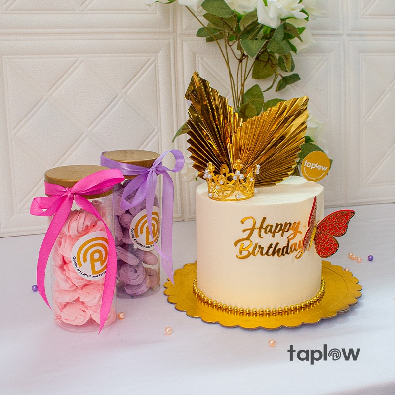 The Regal Bliss & Kisses Gift Set is the ultimate way to celebrate in style. Featuring the luxurious Regal Bliss Cake, paired with two packs of our irresistible Sprinkle Kisses, this set brings a perfect balance of elegance and sweetness to any birthday occasion.