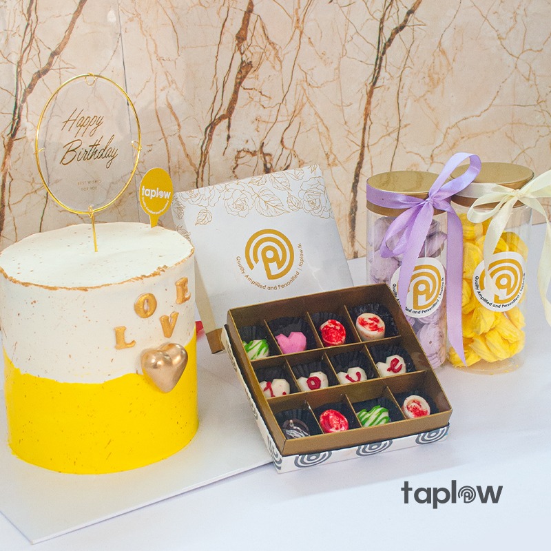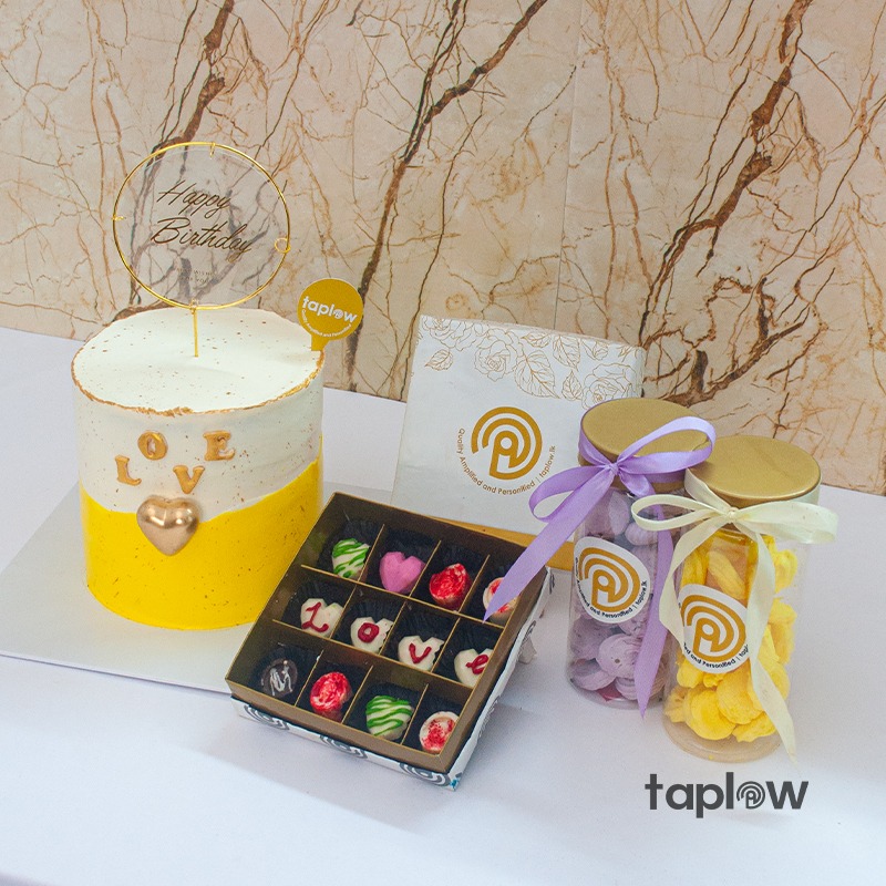 Sweet Love & Cocoa Set is a heartwarming cake with “Love” at the front, paired with luxurious Swiss praline chocolates and sprinkle kisses—rich and perfect for celebrating love.