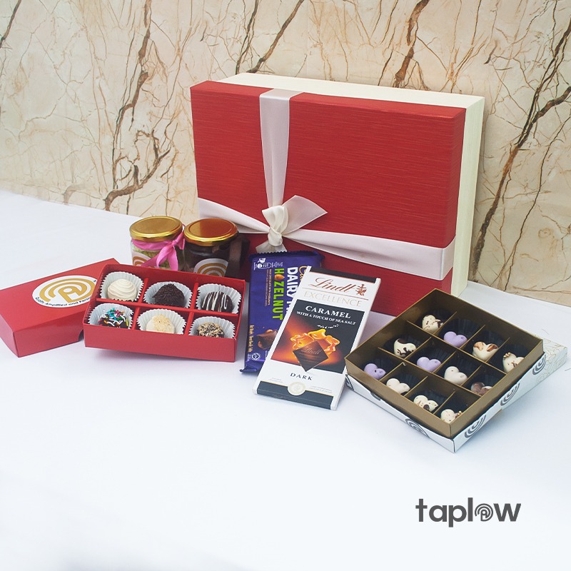Embark on a journey of rich, decadent flavors with The Ultimate Chocolate Experience – a luxurious gift box curated for true chocolate lovers. Every element is chosen to delight the senses, from handcrafted truffles to premium international chocolates and playful sweet treats.