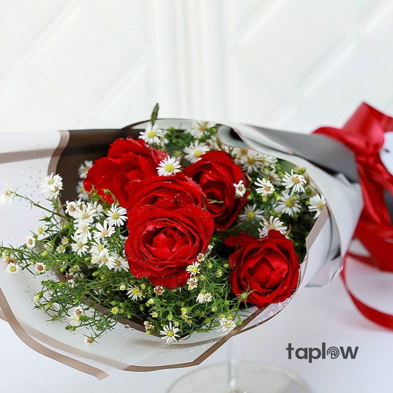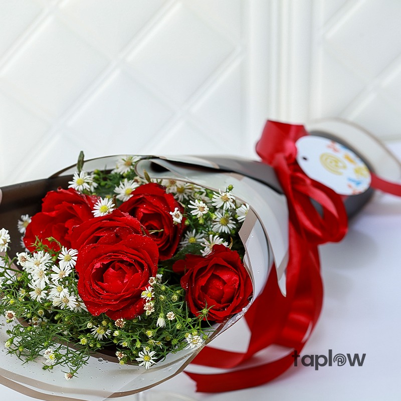A symbol of enduring love, the Timeless Romance Bouquet features 5 passionate red roses paired with fragrant white Michels flowers, known for their purity and elegance. Beautifully wrapped in contrasting white and black paper, this bouquet captures the essence of romance in every petal. A perfect gift for expressing timeless love, devotion, and affection.