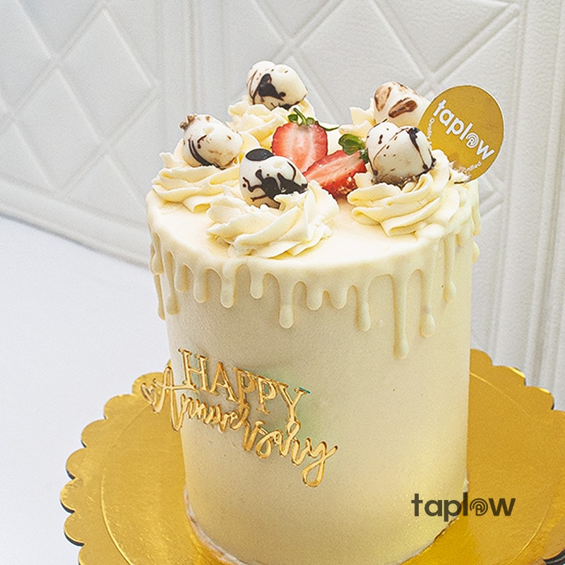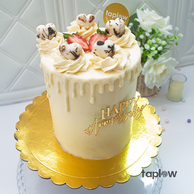 Celebrate lasting love with our White Chocolate Anniversary Bliss Cake, a luxurious treat crafted with smooth butter icing, a rich white chocolate drip, and topped with delicate handmade white chocolate decorations. Elegant and timeless, this cake is made to mark beautiful memories and sweet milestones.