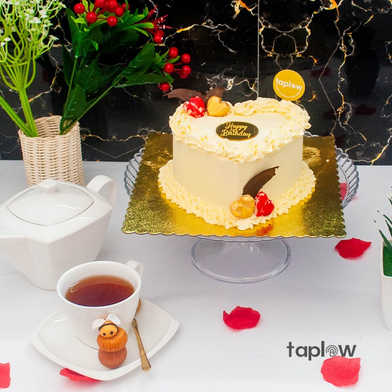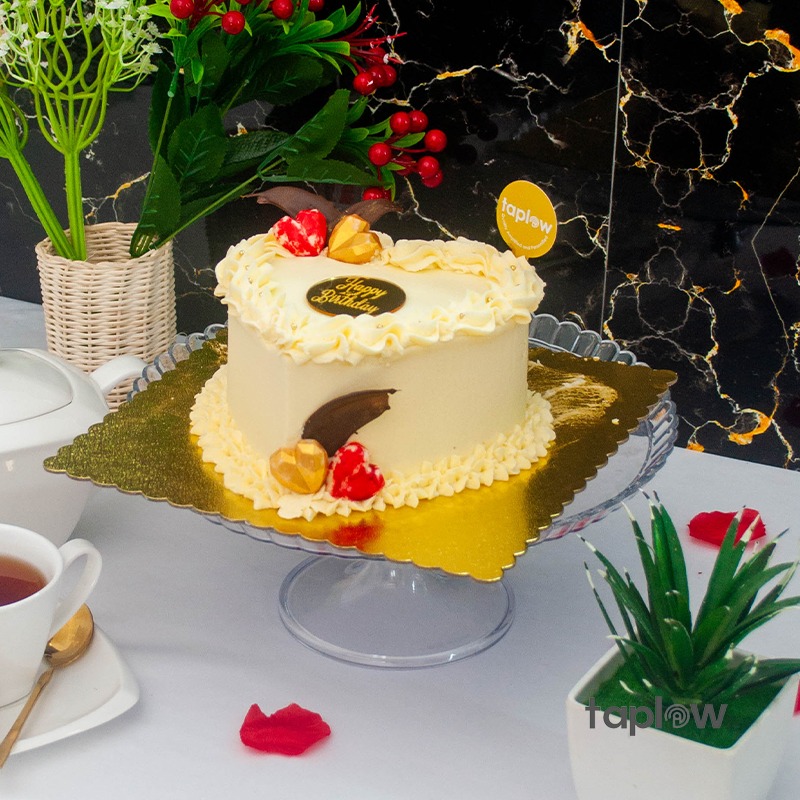 The White Heart Birthday Cake is a beautifully designed dessert, featuring a soft, moist cake adorned with delicate white icing in the shape of a heart. Its elegant decoration and sweet flavor make it the perfect centerpiece for any birthday celebration. This cake combines light textures with a rich taste, making it a delightful treat for all to enjoy.